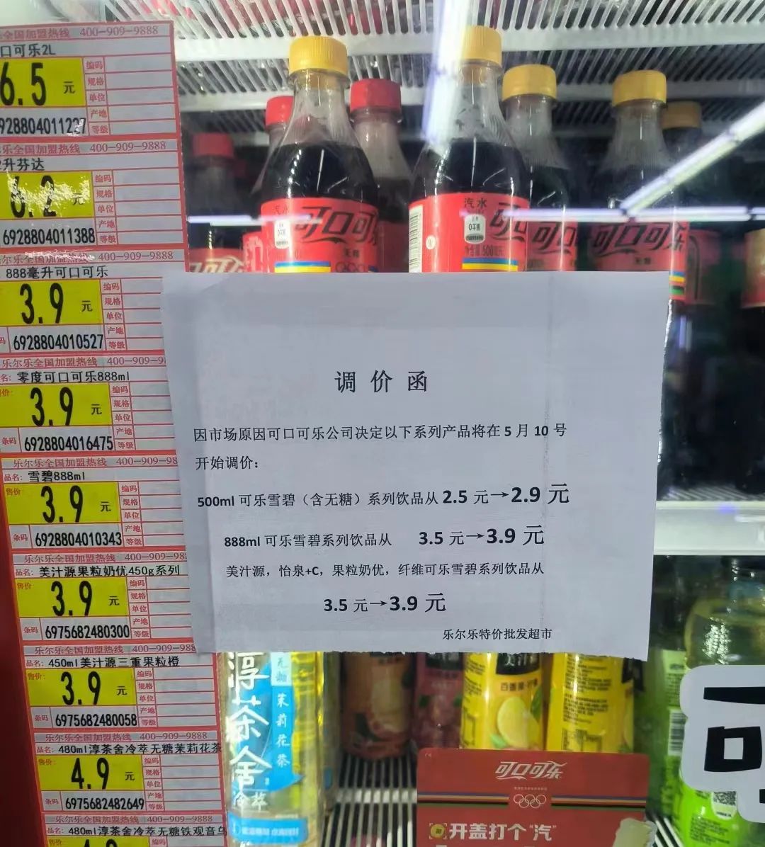 有余为奇,有着“价格屠夫”之称的硬合扣典型代表乐尔乐也正在此前发布通知称,自5月10日初步伐价,500ml可乐/雪碧系列饮品从2.5元调价至2.9元,888ml可乐/雪碧系列饮品从3.5元调解至3.9元。